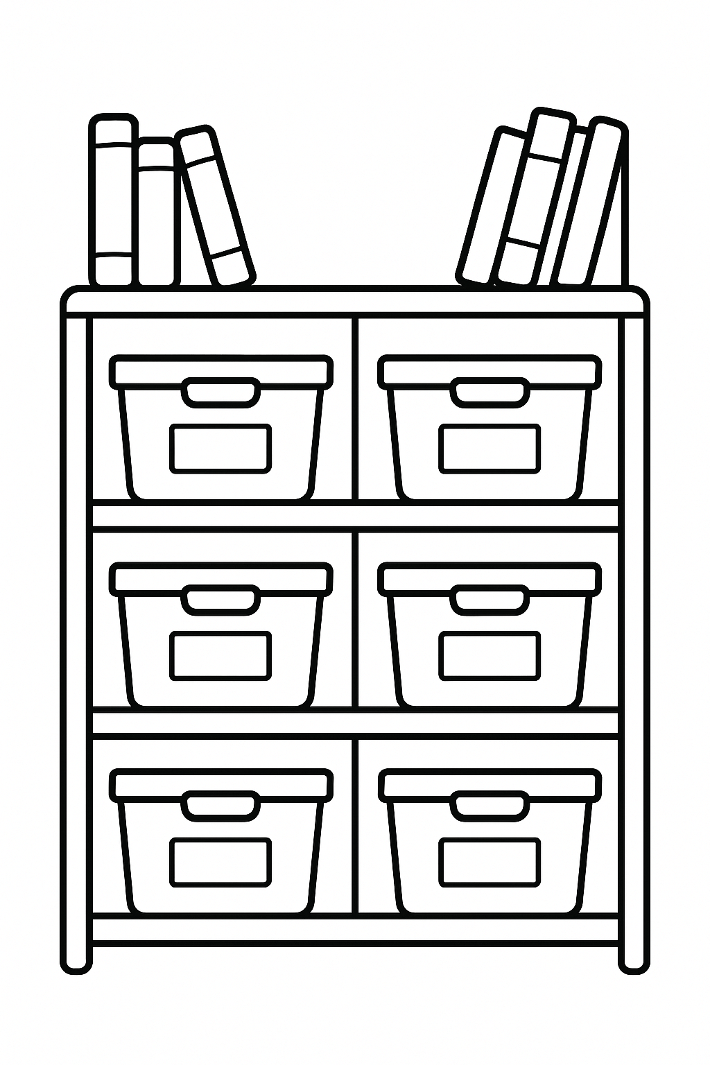 Holzregal mit Bücher und Boxen