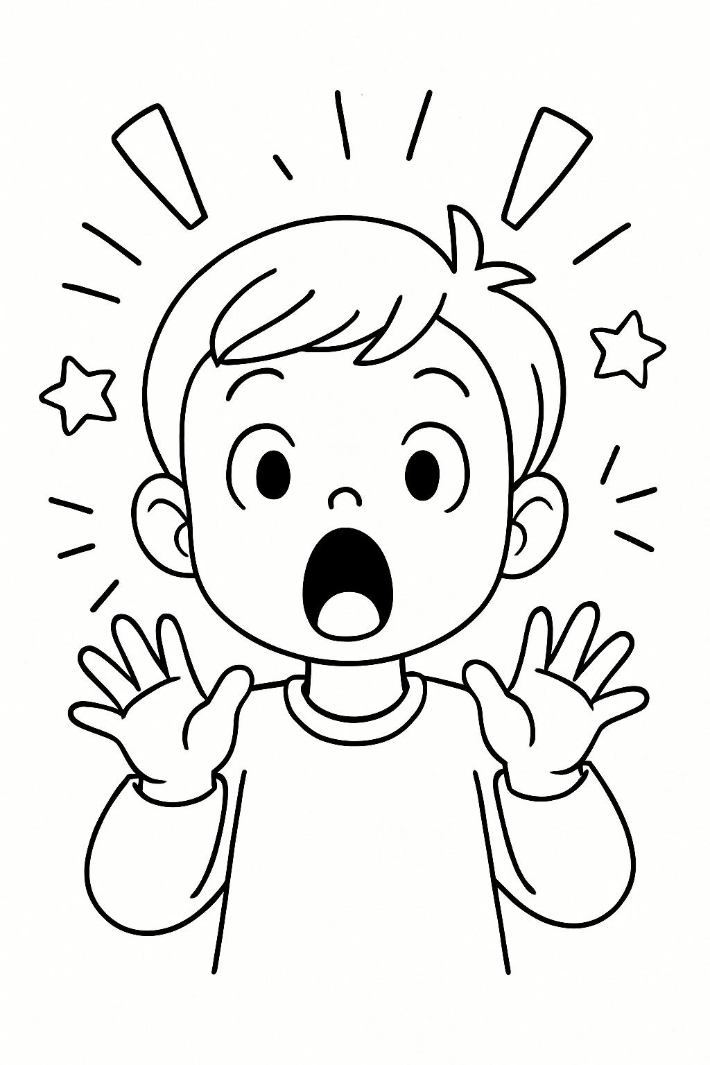 Überraschtes Kind mit Sternen und Ausrufezeichen